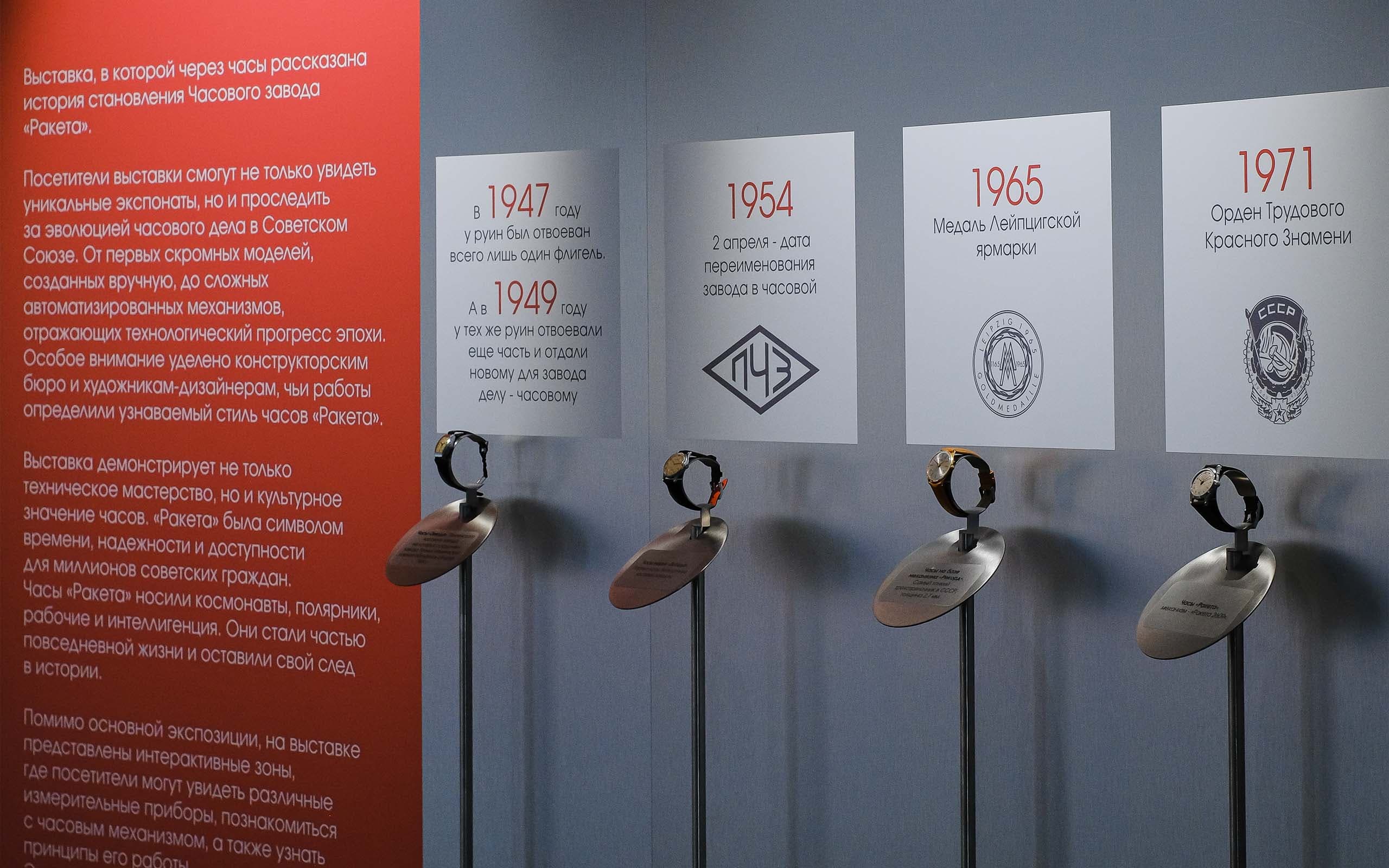 Ретроспективная выставка, где историю становления Часового Завода «Ракета» рассказывают сами часы.